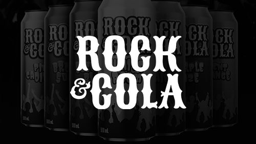 A project creating a brand and identity for a fictional new soft drink, Rock & Cola.